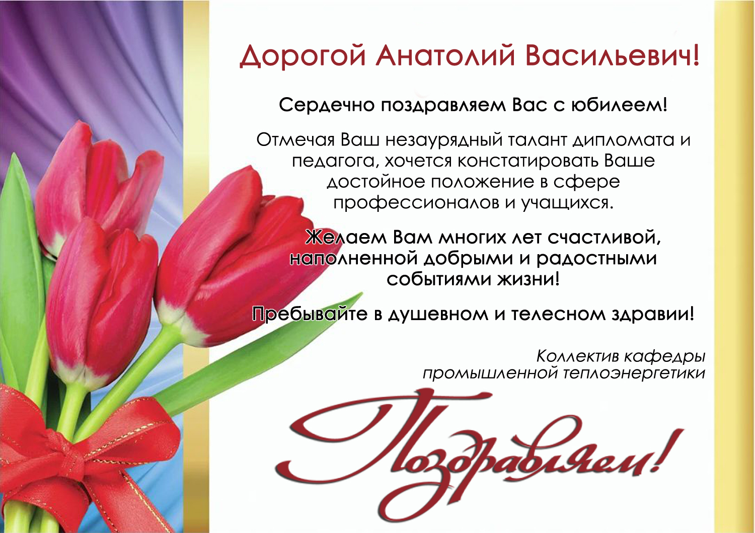 Коллектив кафедры ТЭС сердечно поздравляет Вас с ЮБИЛЕЕМ!