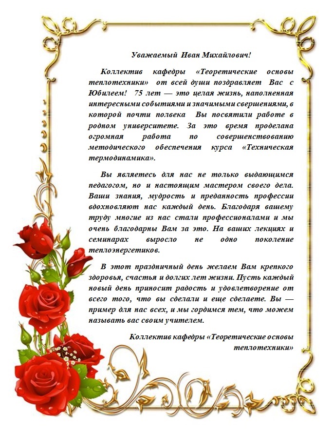 Коллектив кафедры теоретические основы теплотехники от всей души поздравляет Вас с Юбилеем!