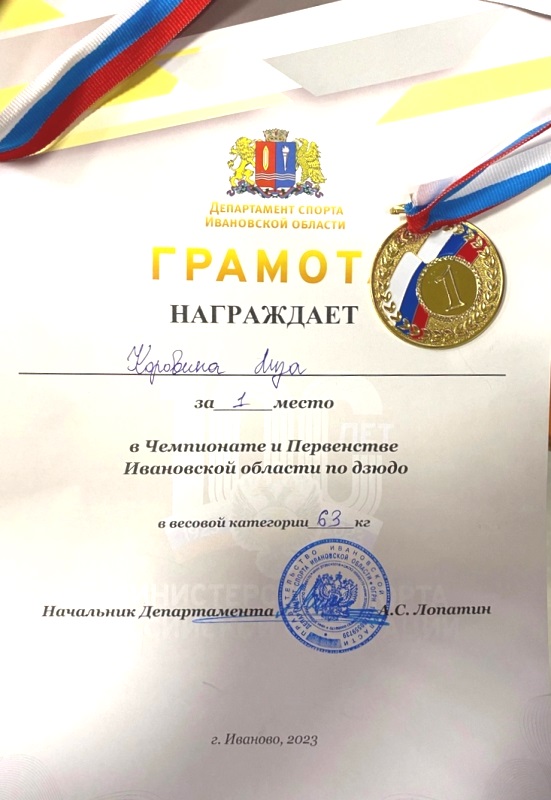 Поздравляем Коровину Елизавету (2-ээ-2) с 1 местом в Первенстве Ивановской области по дзюдо среди женщин, а так же со 2 местом в Первенстве ЦФО по дзюдо среди юниорок до 21 года.