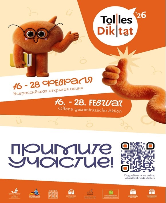 С 16 по 28 февраля 2026 года в 14-й раз пройдет Всероссийская открытая акция «Tolles Diktat» по инициативе общественных организаций российских немцев. Акция направлена на развитие культуры грамотного письма на немецком языке, а также на популяризацию историко-культурного наследия и достижений немцев России.