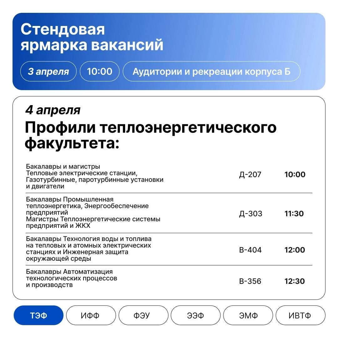 Стендовая ярмарка вакансий будет проводиться 3 апреля с 10:00, заезд на мероприятие с 8:00.