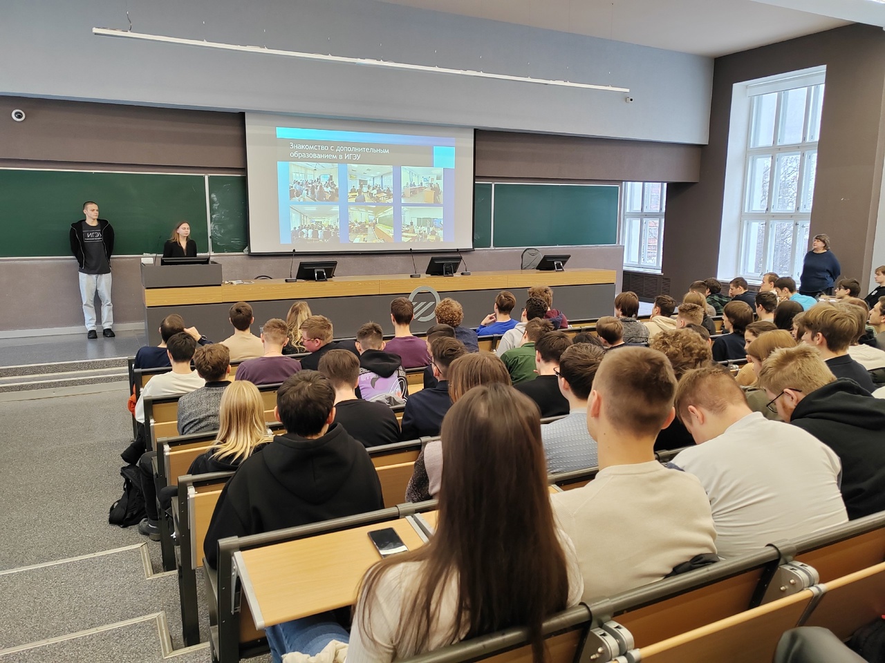 - В рамках направления «Разработка и реализация модели организации профориентационной деятельности среди школьников» студентами под руководством Чистяковой Карины было проведено 20 профориентационных встреч в 10 городах Ивановской и Владимирской области, включающих викторину «Дорога в мир IT.