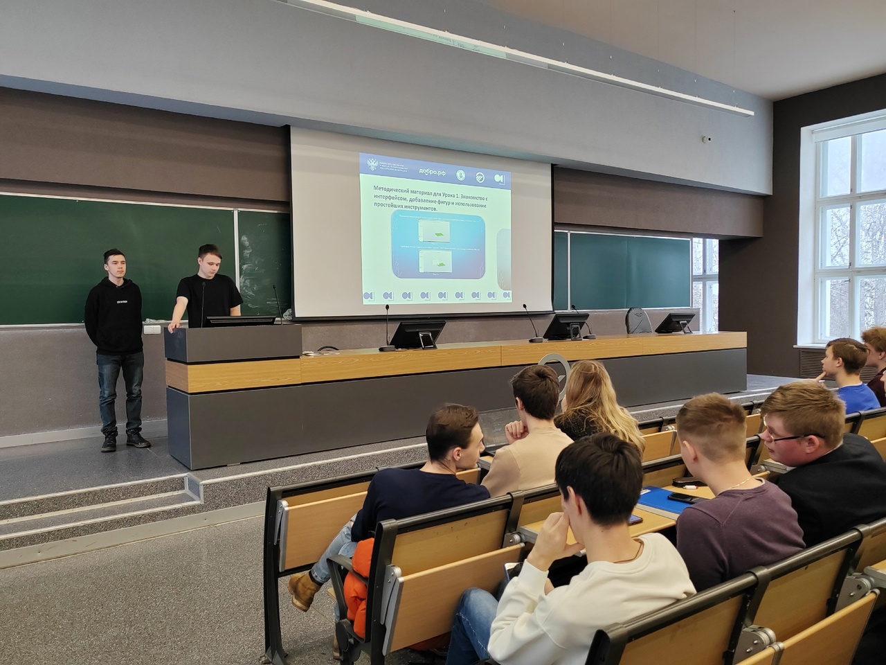 - В рамках направления «Разработка графического векторного редактора» под руководством Шарова Антона были добавлены новые возможности в редактор, а также проведено тестирование приложения среди студентов первого курса с целью изучения ими основных принципов создания векторных изображений.