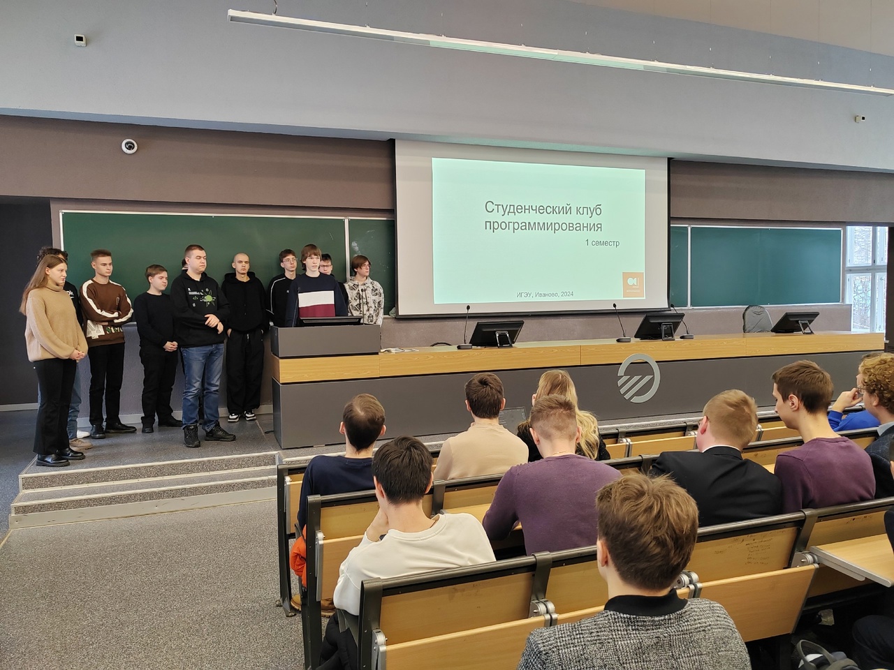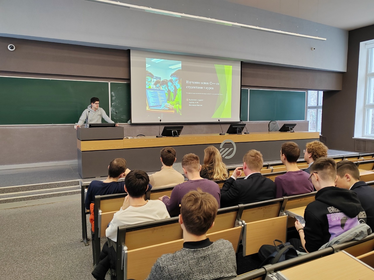 - Команда направления «Студенческий клуб по программированию» под руководством Сизякова Ивана проводила занятия по программированию для первокурсников. В течение 10 занятий ребята изучили 7 базовых тем: Блок-схемы и алгоритмы, введение в программирование, применение функций, работа со строковыми данными, указатели и массивы, работа с файлами и пользовательские структуры данных.