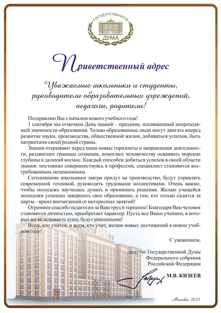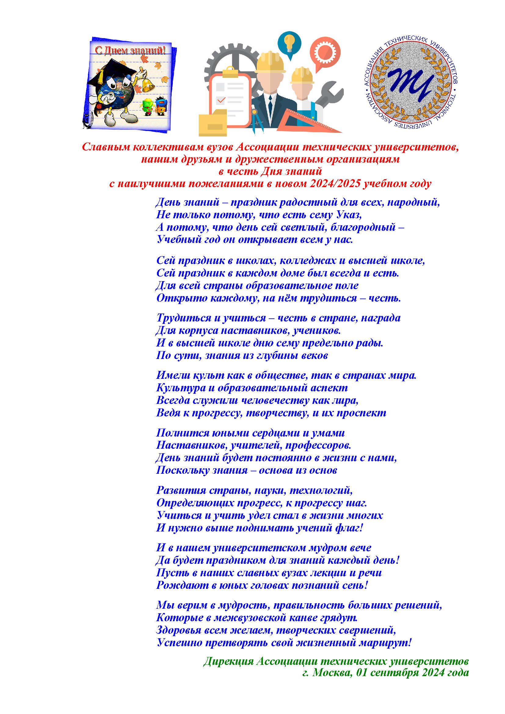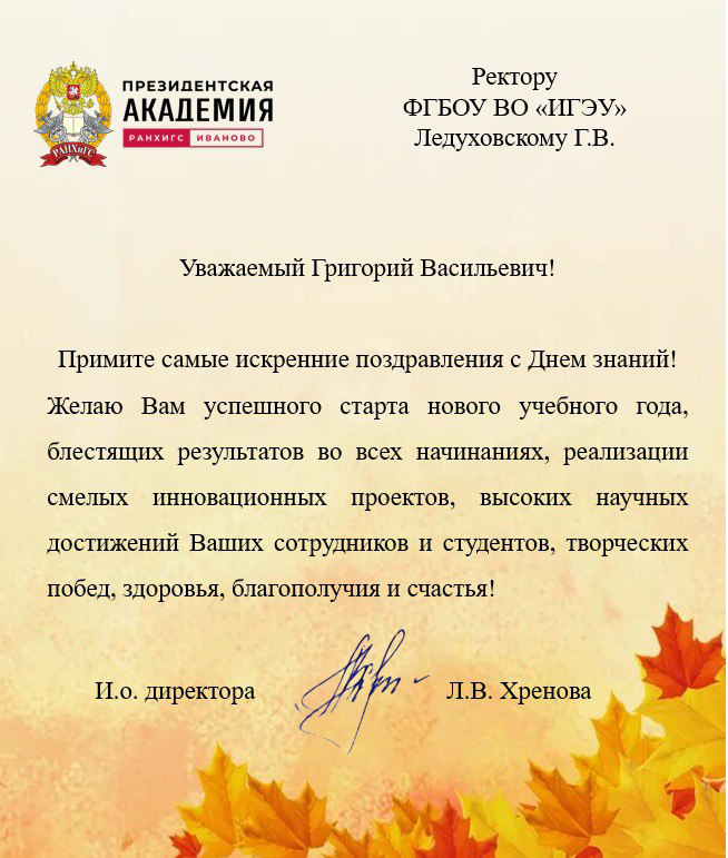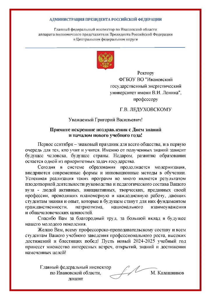 admin 27 August 2024 Поздравление коллектива ИГЭУ с началом нового учебного года. 67 просмотров Подразделение Ректорат Категории Новости Главные новости