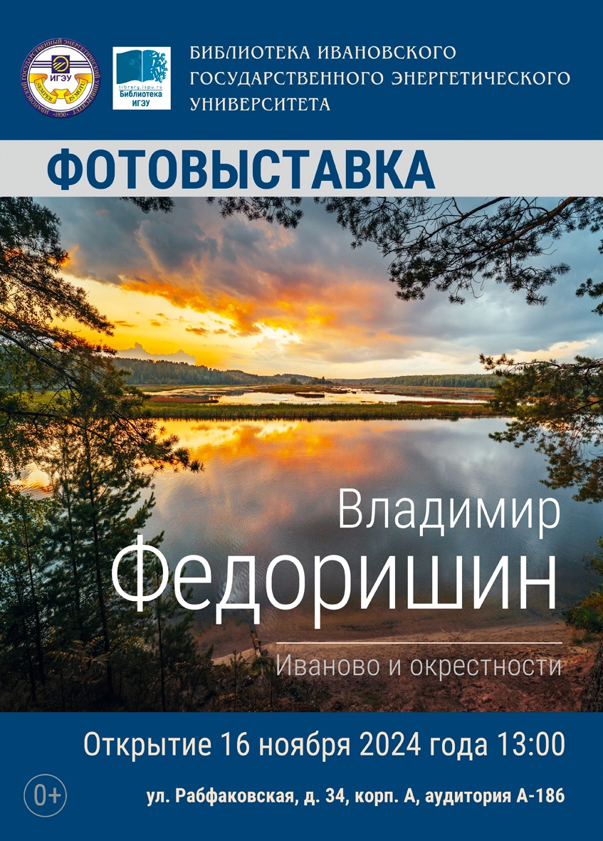 Приглашаем на открытие фотогалереи «Иваново и окрестности», 16 ноября 2024 г. (А-186 библиотека, 1 этаж)