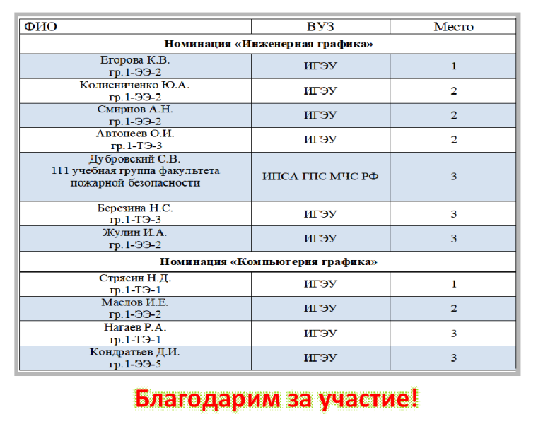 Приглашаем студентов вузов принять участие в ОТКРЫТОЙ ОЛИМПИАДЕ ПО ИНЖЕНЕРНОЙ ГРАФИКЕ, которая состоится на базе Ивановского государственного энергетического университета имени В.И. Ленина