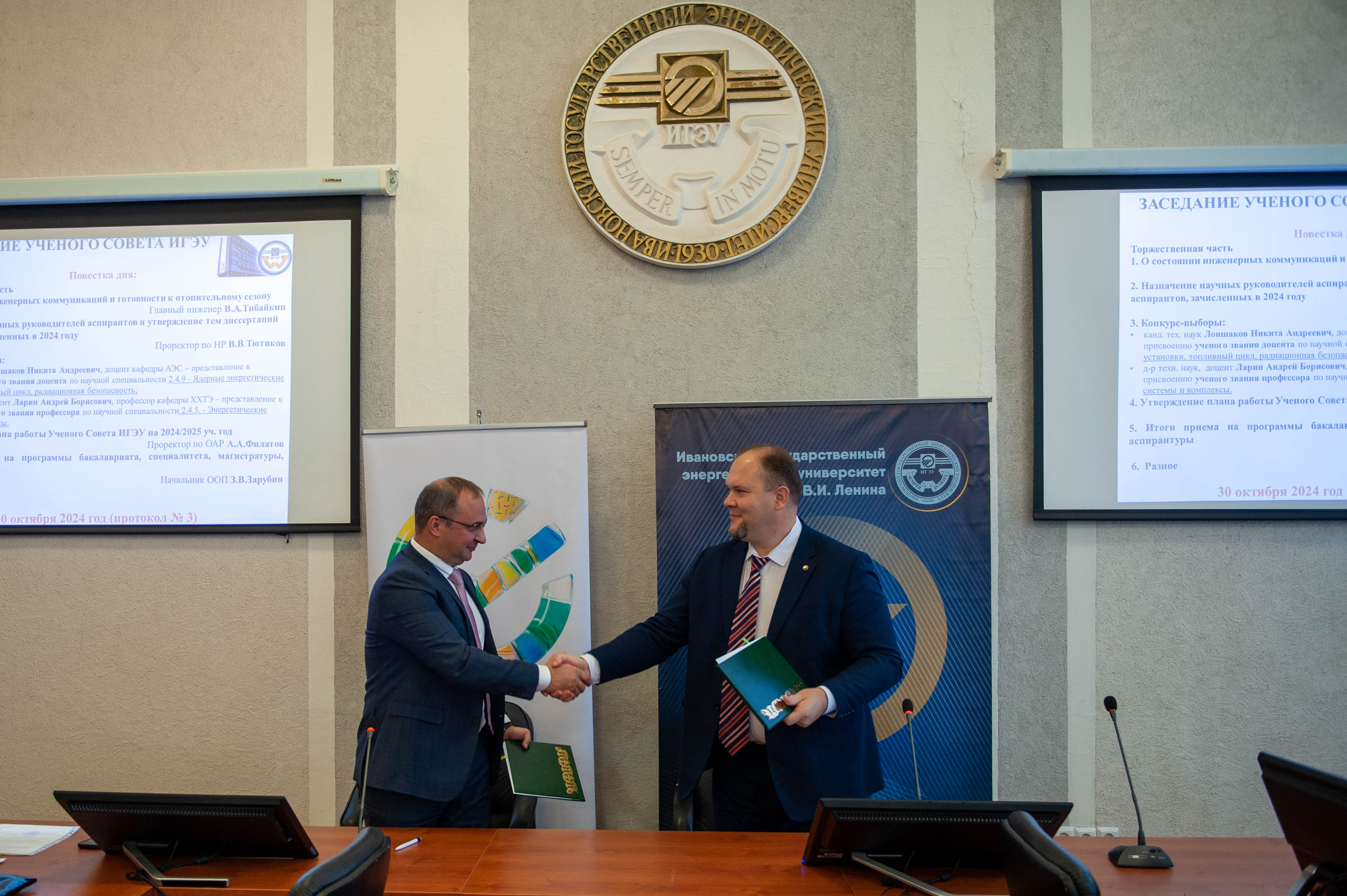 30 октября на заседании Ученого совета ИГЭУ состоялось подписание соглашения о сотрудничестве университета с ПАО «Сбербанк России». Подписи под документом поставили ректор ИГЭУ Григорий Ледуховский и Управляющий Ивановским отделением банка Андрей Зорин.