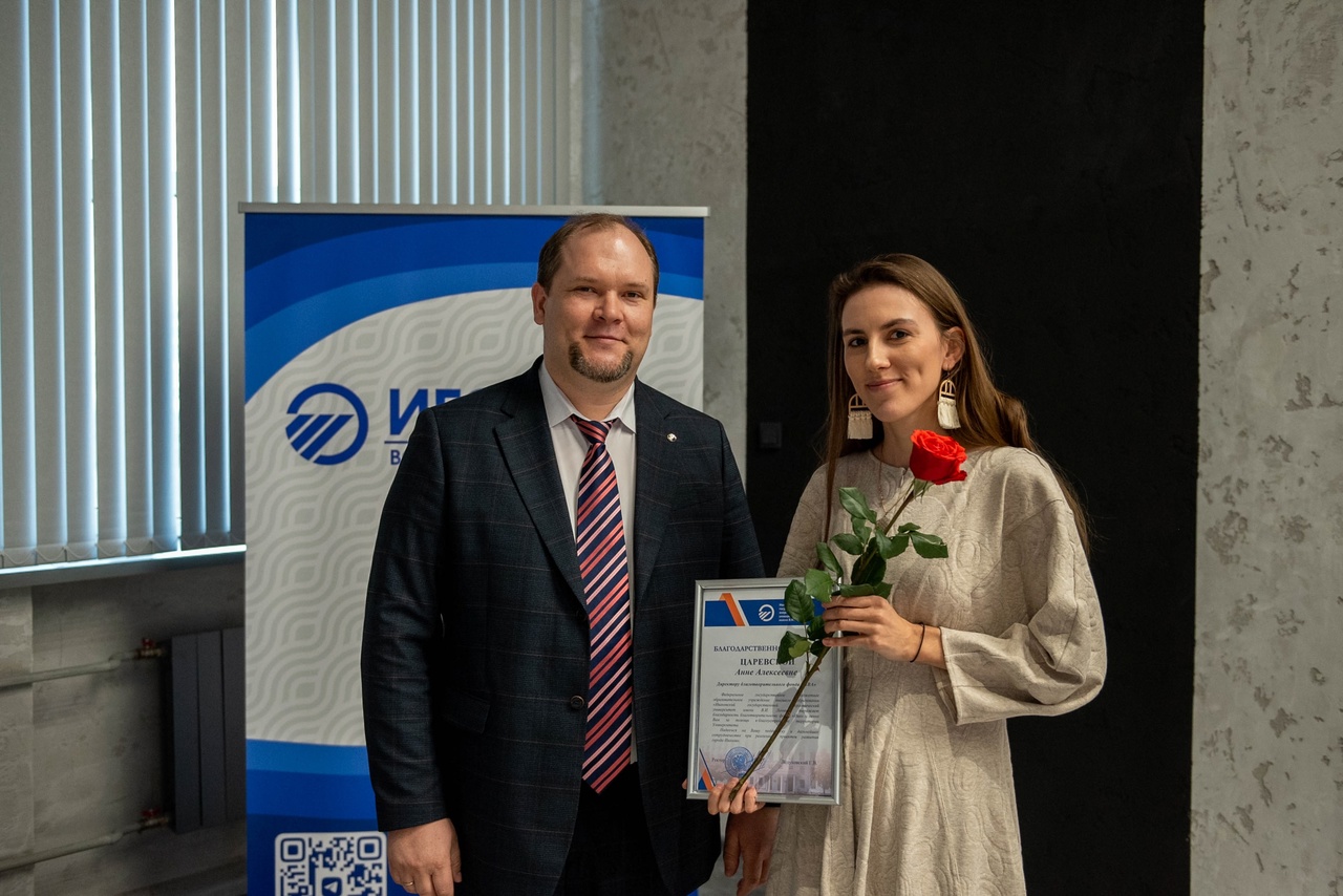 • Благодарственное письмо ректора ИГЭУ директору благотворительного фонда "Ива", члену общественного совета г. Иваново Царевской Анне Алексеевне;