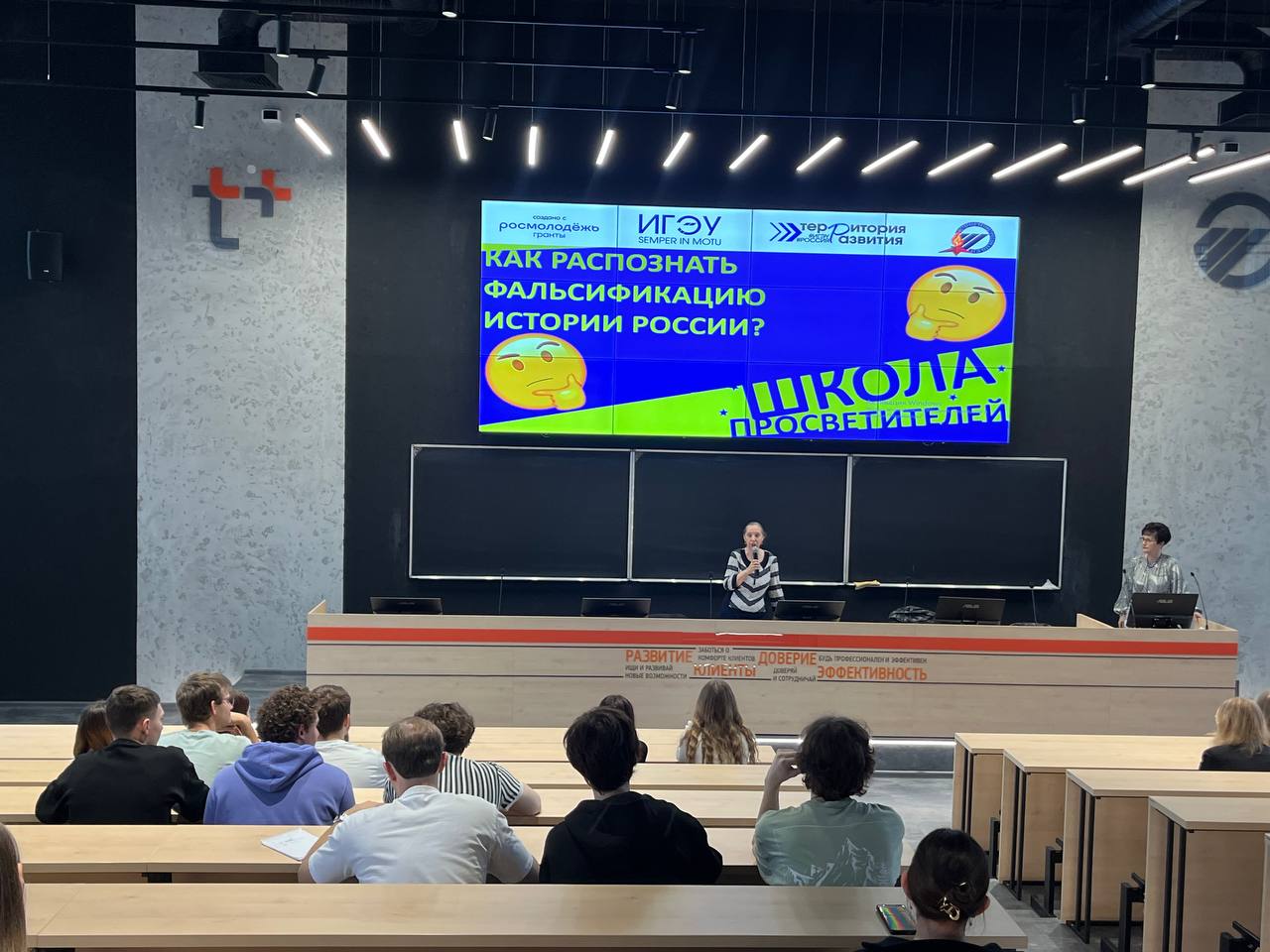 - Для студентов первых курсов были проведены интерактивные лекции и мастер-классы по способам выявления фальсификации отечественной истории. Студенты узнали о причинах искажения истории России внутренними и зарубежными акторами, о способах выявления фальсификации и борьбы с ней. Опытные эксперты Галина Анатольевна Будник и Алексей Сергеевич Сироткин провели ряд лекций по темам: «Как распознать фальсификацию истории России?»; «Великая Отечественная и Вторая мировая войны в контексте геополитических интересов западных стран»; «Специальная военная операция как симулякр западной антироссийской пропаганды». В мастер-классах студенты на практике освоили некоторые способы выявления фальсификации, а также получили опыт создания видеороликов и презентаций на соответствующую тематику.