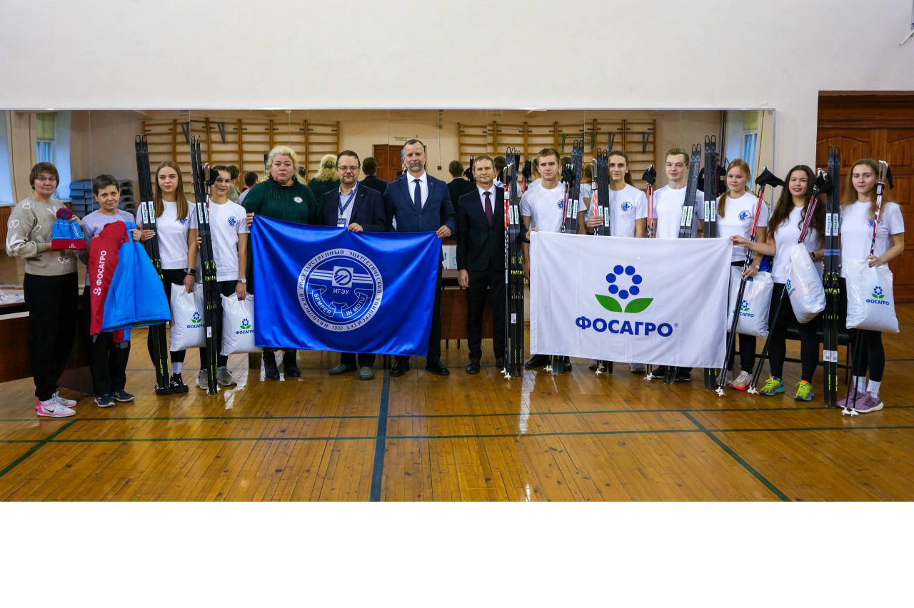 Неожиданным и приятным дополнением к такому событию стал подарок ФосАгро кафедре физического воспитания. В ходе встречи со сборной командой ИГЭУ по лыжным гонкам компания подарила к 95-летию вуза спортивный инвентарь и экипировку!