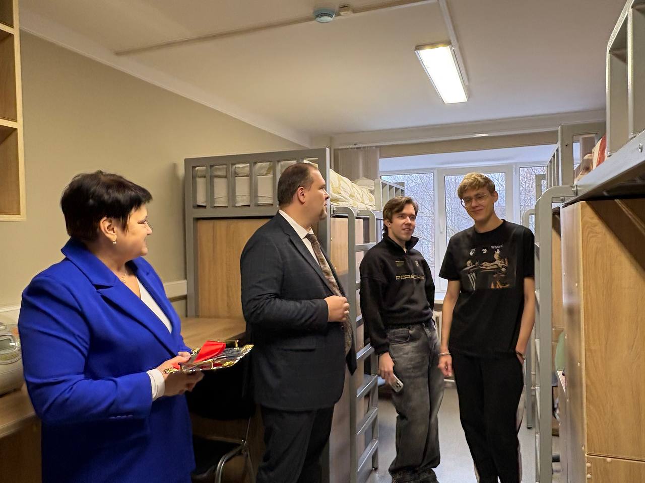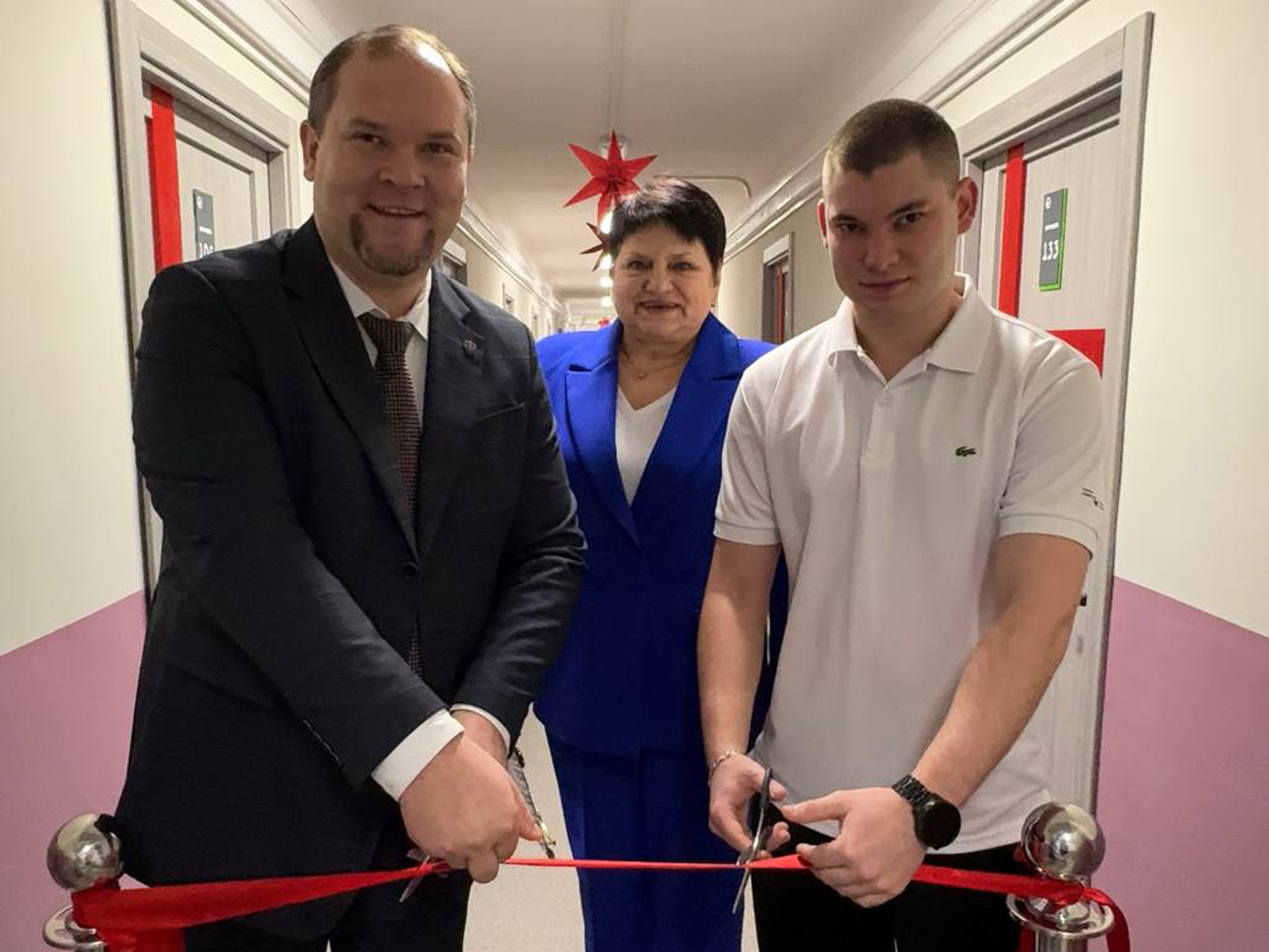 Сегодня состоялось торжественное открытие общежития с вводом в эксплуатацию последнего незаселенного на данный момент этажа. Приятно было пообщаться со студентами, которые уже проживают в обновленных комнатах, и увидеть их стремление к поддержанию порядка и бережное отношение к новому оборудованию.