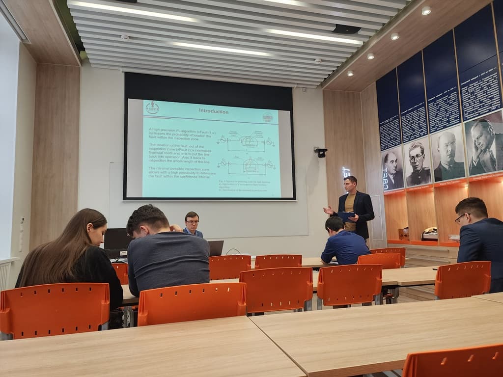 – аспирант каф. АУЭС Антон Панащатенко с докладом: «Determing the characteristics of current transformers required for correct operation of relay protection devices in transient modes», авторы к.т.н., доц. каф. АУЭС А.А. Яблоков, асп. каф. АУЭС А.В. Панащатенко, маг. 2-29М А.Р. Тычкин.