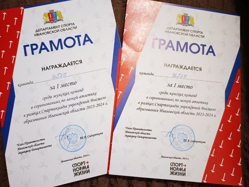 17 мая Мужская и женская сборные ИГЭУ по лёгкой атлетике - победители Спартакиады вузов Ивановской области 2023-24 уч. года!