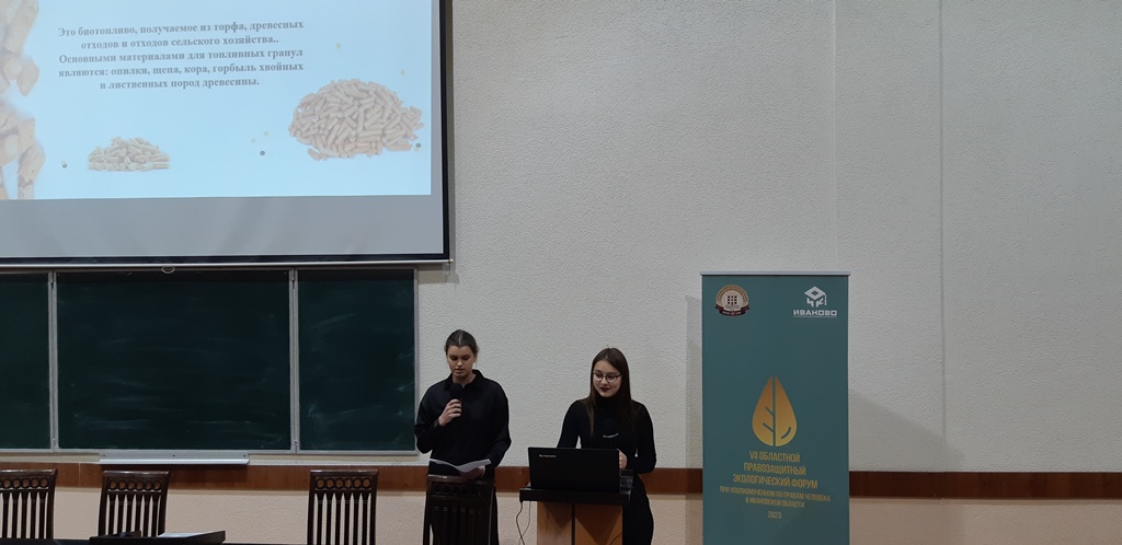 Сараева Э.В. и Тагунова Ю.В. выступили в ИГХТУ на дискуссионной площадке «Экология Ивановской области. Аспекты правозащиты» с докладом «Проблемы утилизации короотходов и производство топливных биогранул « рук. Зайцева Е.В.;
