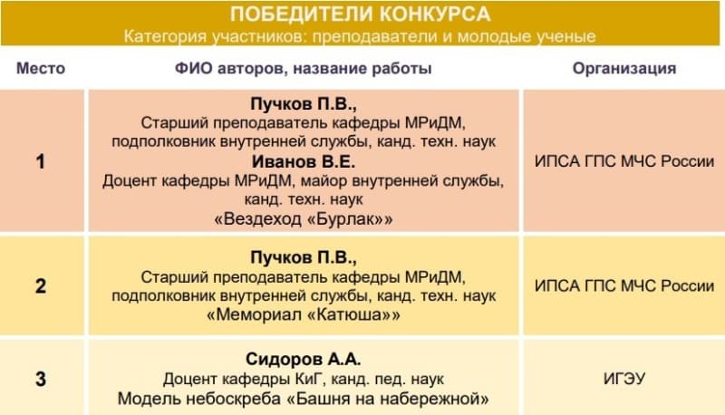 Категории участников Конкурса: преподаватели и молодые ученые; студенты ВУЗов; студенты колледжей; учащиеся общеобразовательных образовательных организаций и организаций дополнительного образования.