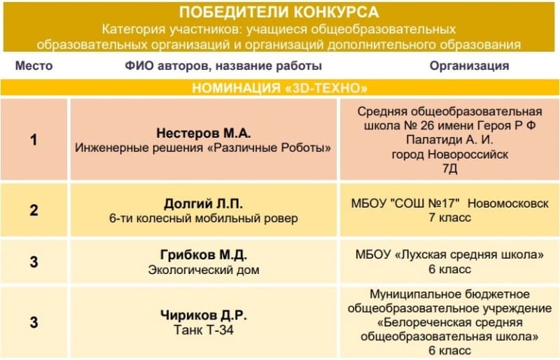 Поздравляем призеров и победителей всероссийского конкурса «МИР 3D моделирования»!