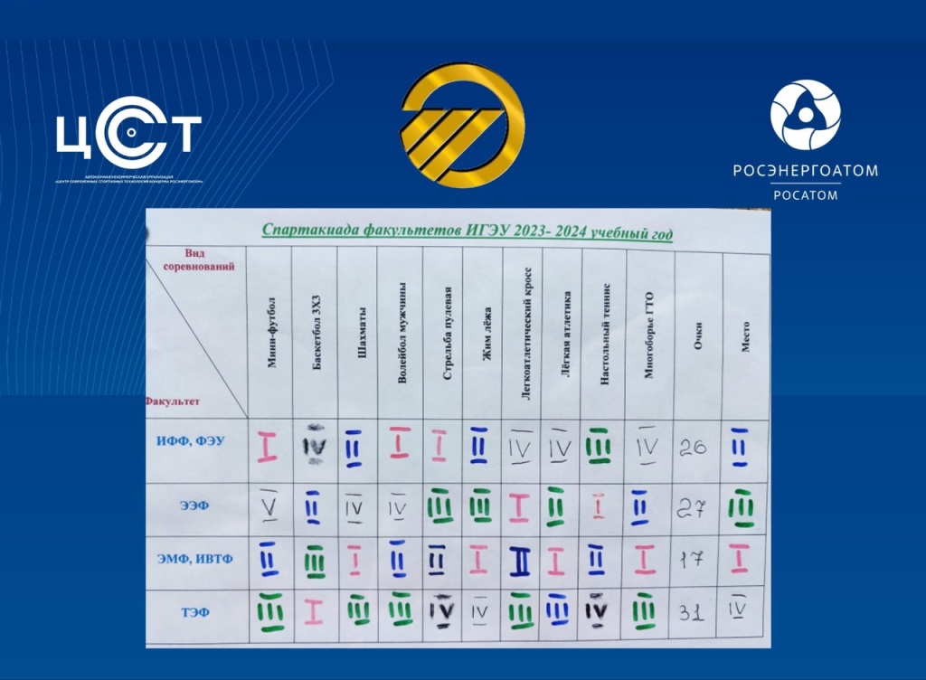 Подведены итоги Спартакиады факультетов ИГЭУ «Атомная энергия спорта» 2023-24 уч. года.