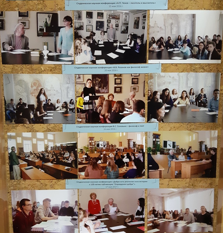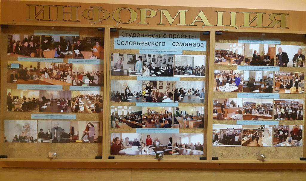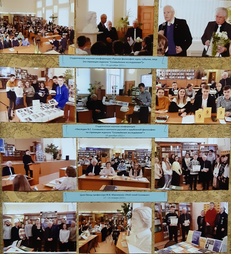 Первостепенное внимание уделялось ознакомлению студентов с философским, литературным и публицистическим наследием В.С. Соловьева. Итогом этой работы были конференции «Добро есть реальная сила истории: к 120-летию публикации “Оправдания добра”», «Оправдание культуры в творчестве В.С. Соловьева и в русской философской мысли», «В.С. Соловьев и его наследие в современном мире: к 165-летию со дня рождения В.С. Соловьева и 20-лению деятельности Межрегионального центра исследований наследия В.С. Соловьева (Соловьевского семинара)», «Наследие В.С. Соловьева в контексте русской и зарубежной философии (по страницам журнала “Соловьёвские исследования”)».