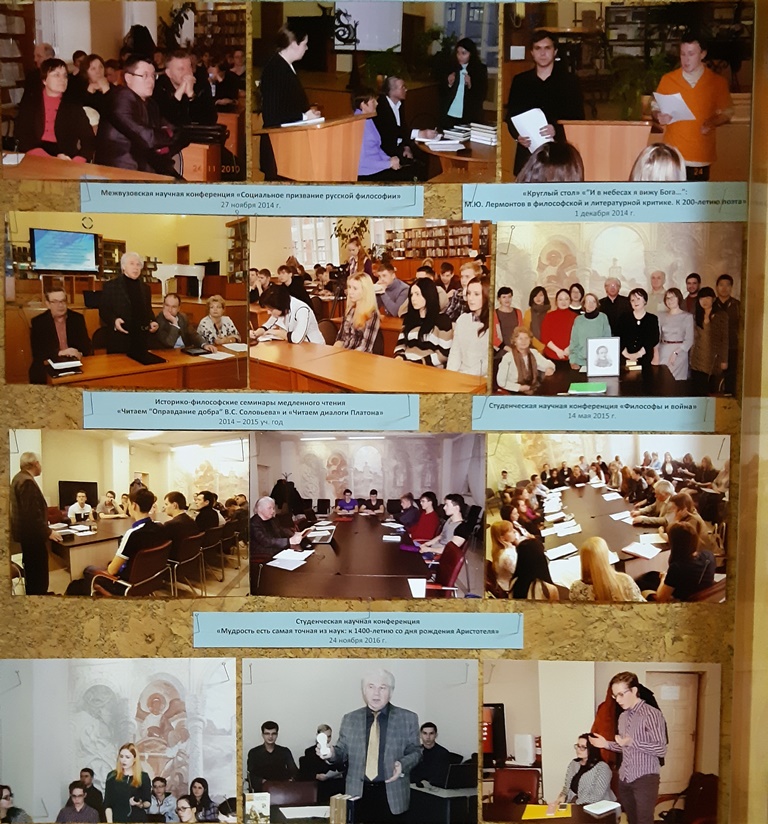 Интересный опыт накоплен благодаря работе историко-философских семинаров медленного чтения и конференций, посвященных великим философам и их бессмертным сочинениям. Такими были семинары «Читаем “Оправдание добра” В.С. Соловьева» и «Читаем диалоги Платона» и углубленное ознакомление с творчеством Аристотеля и русского философа В.В. Розанова, завершившееся конференциями «Мудрость есть самая точная из наук: к 1400-летию со дня рождения Аристотеля» и «В.В. Розанов как философ жизни».