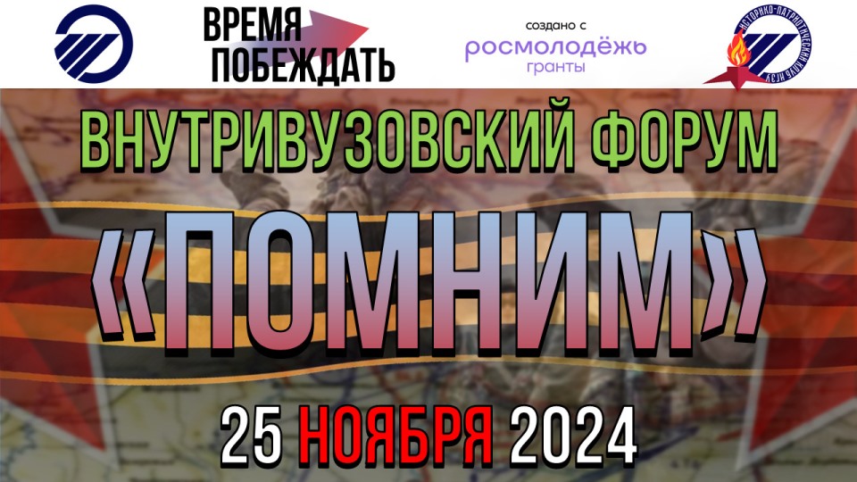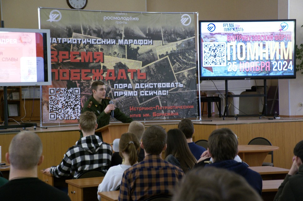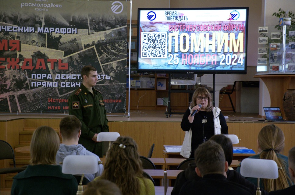 Заключительным событием в рамках внутривузовского форума «Помним» 25 ноября стало награждение победителей и активных участников мероприятий проекта «Время побеждать».