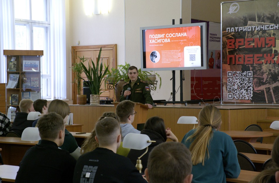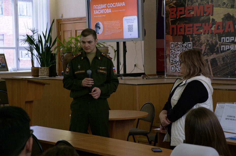 В заключении перед студентами выступил преподаватель Военного учебного центра ИГЭУ – майор Артем Александрович Пелин. Совсем недавно он был удостоен почетной государственной награды – был награжден медалью Суворова! Он рассказал ребятам о своем опыте работы в зоне СВО.