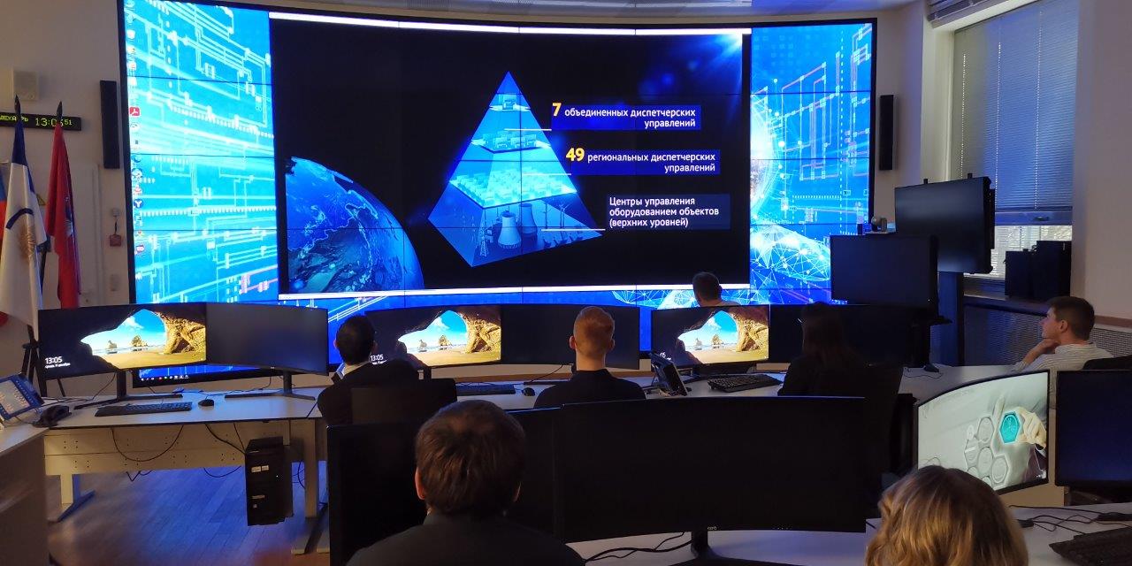 О роли информационных технологий в управлении энергосистемами 19 субъектов РФ с населением свыше 41 млн человек студентам рассказал начальник службы программно-аппаратных комплексов ОДУ Центра Александр Глазков. В диспетчерском зале ОДУ Центра установлен современный диспетчерский щит на основе ЖК-панелей. Надежность диспетчерской связи и передачи данных обеспечивают волоконно-оптические линии связи. Студенты посетили серверные, гермозоны основного и резервного диспетчерских щитов ОДУ Центра, помещения дежурных специалистов по ИТ и по инженерным системам. Александр Глазков рассказал экскурсантам о требованиях, предъявляемых к диспетчерским центрам Системного оператора, и необходимости их оснащения современным высокотехнологичным оборудованием ИТ и инженерным оборудованием.