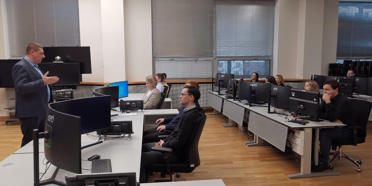 Владимир Терзе рассказал участникам экскурсии о технических средствах подготовки диспетчеров, а в службе подготовки персонала специально для студентов провели контрольную противоаварийную тренировку с демонстрацией действий диспетчерской смены ОДУ Центра по предотвращению развития и ликвидации технологического нарушения, восстановлению энергоснабжения потребителей.