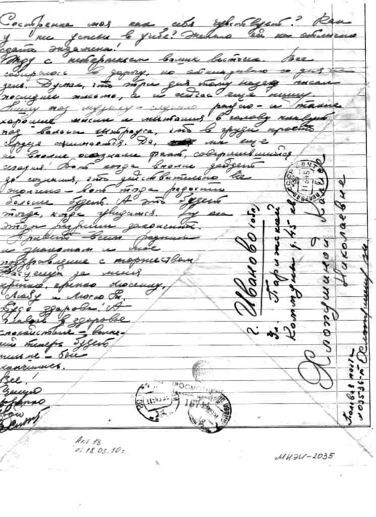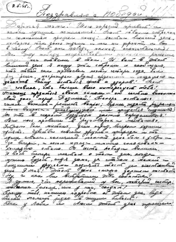Преподаватель кафедры ТЭС Владимир Ильич Хлопушин прошел всю Войну. В день Победы над Германией 9 мая 1945 года он написал письмо своей матери.