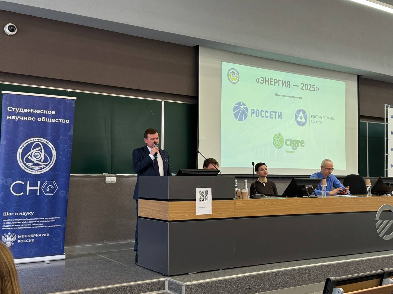 В пленарном заседании принял участие и приветствовал молодых ученых Андрей Алексеевич Ухтин - директор филиала ПАО «Россети Центр и Приволжье» - «Ивэнерго». Он рассказал о технологиях и инновациях, применяемых на современных объектах электроэнергетики, в том числе, в нашем регионе.