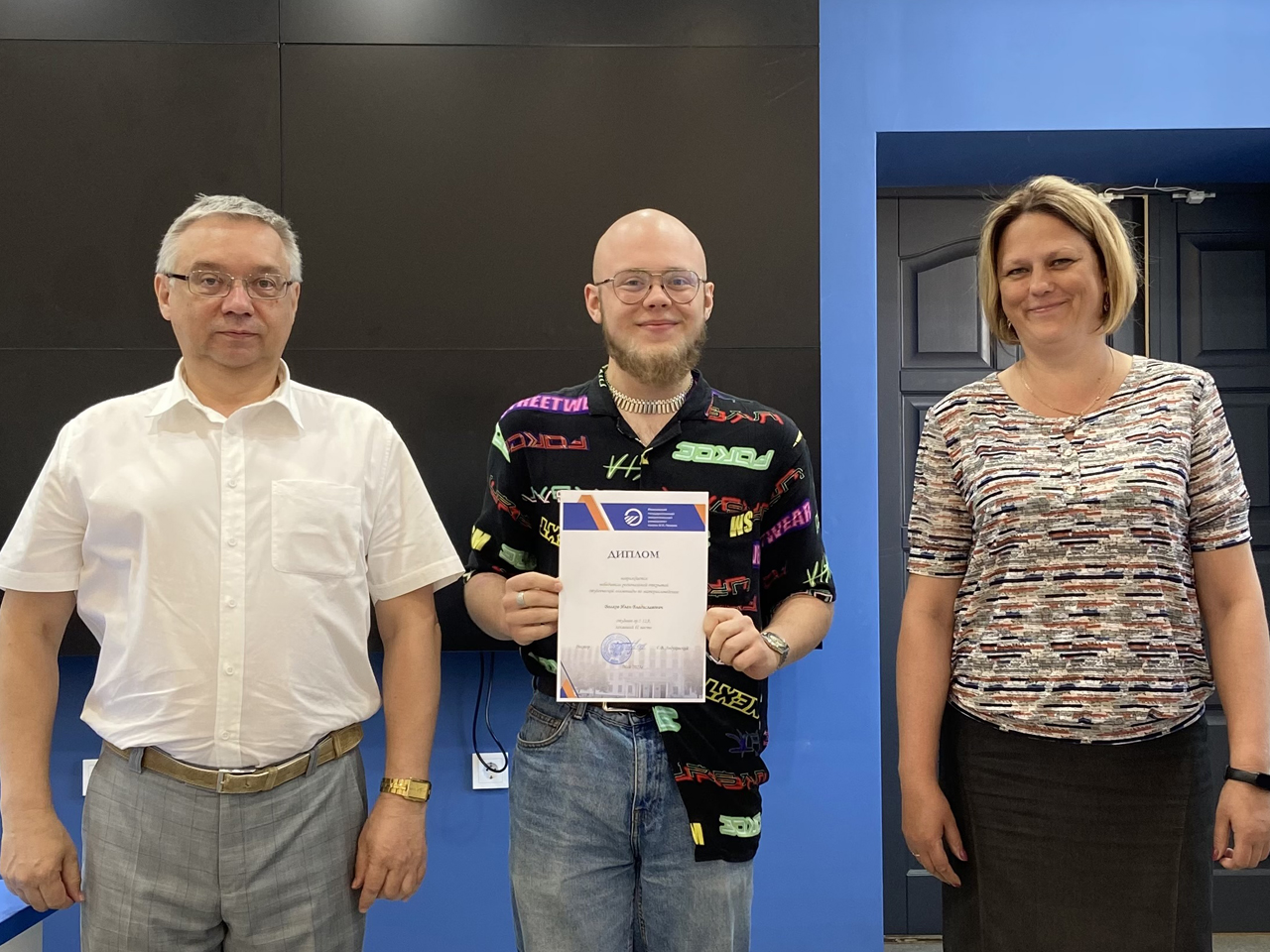 Декан ИФФ Кабанов Олег Альбертович и заведующий кафедрой ТМС Ведерникова Ирина Игоревна поздравили победителей и вручили дипломы.