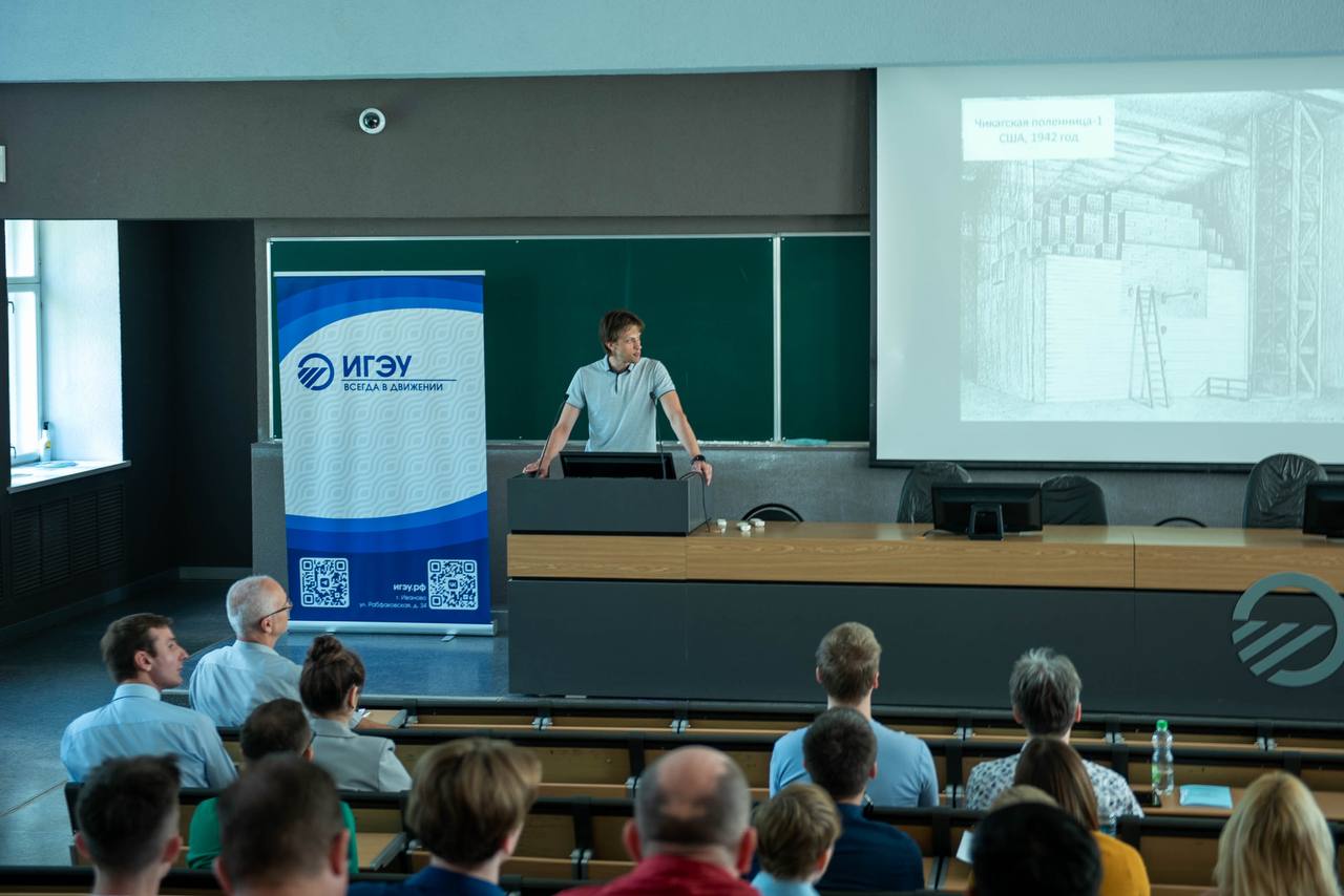 - Доклад к.т.н., доцент, зав. кафедрой АЭС БЕЛЯКОВ А.А. «Состояние и перспективы развития атомной отрасли» был посвящён 80-летию Российской атомной промышленности.