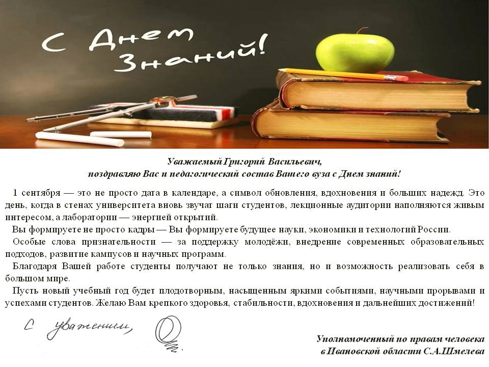 Поздравляем профессорско-преподавательский состав и студентов Ивановского государственного энергетического университета с Днем знаний!