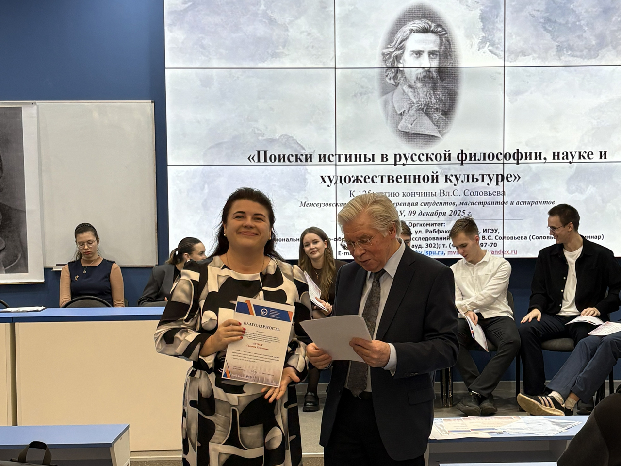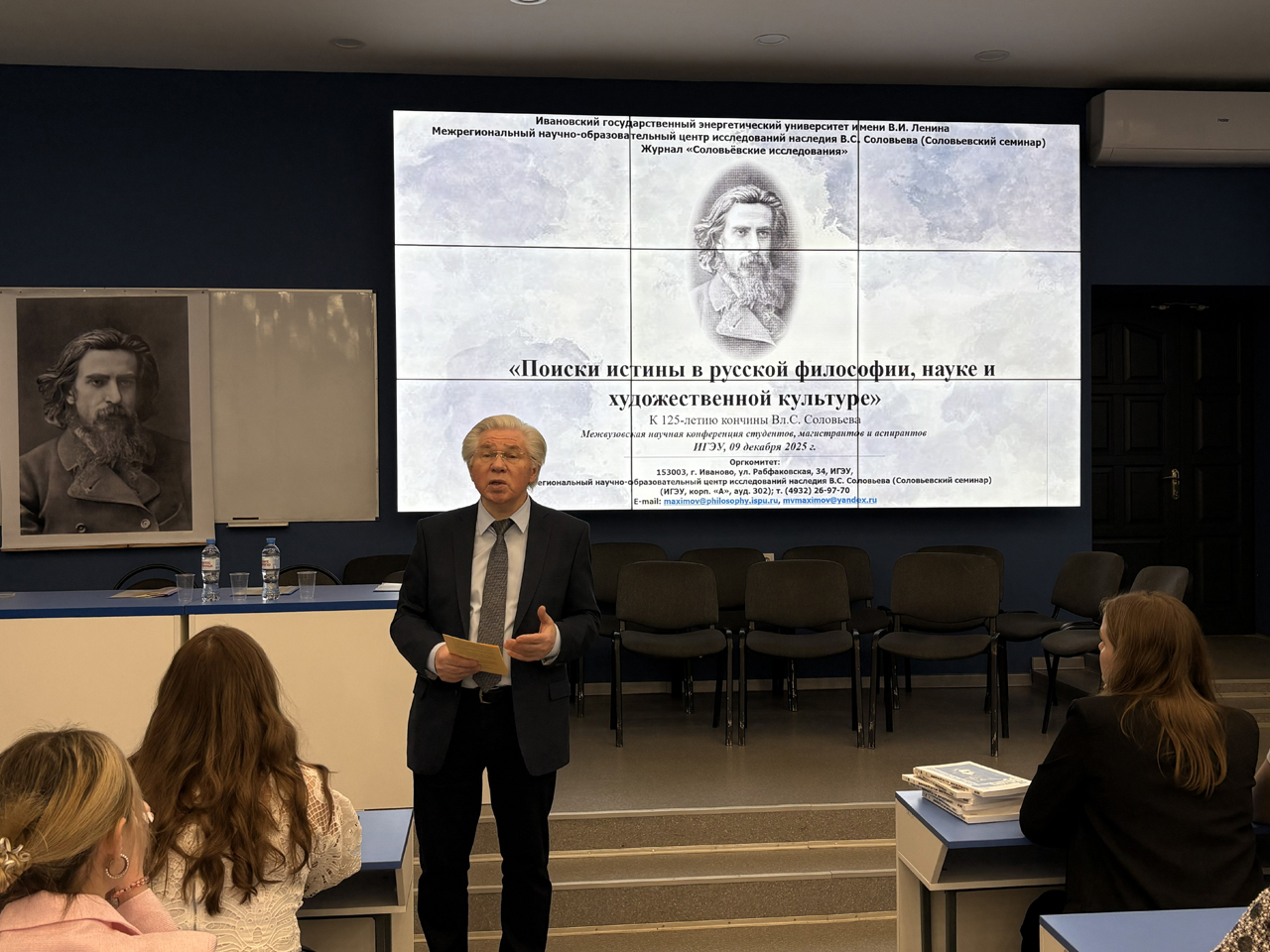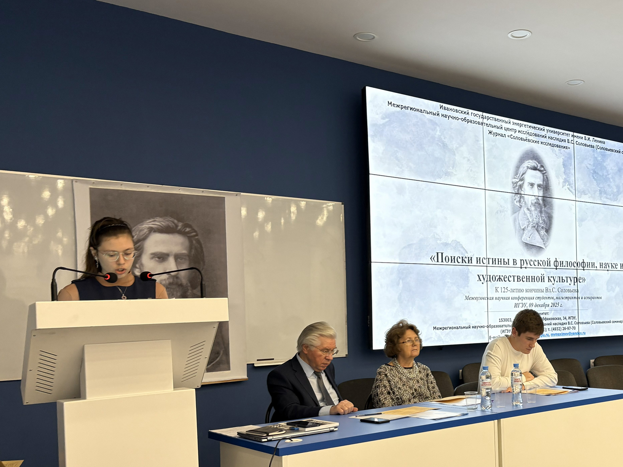 9 декабря 2025 года в ИГЭУ состоялась Межвузовская научная конференция студентов, магистрантов и аспирантов «Поиски истины в русской философии, науке и художественной культуре», посвященная 125 годовщине кончины великого русского философа Владимира Сергеевича Соловьева (1853–1900).