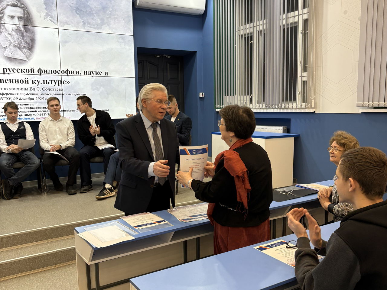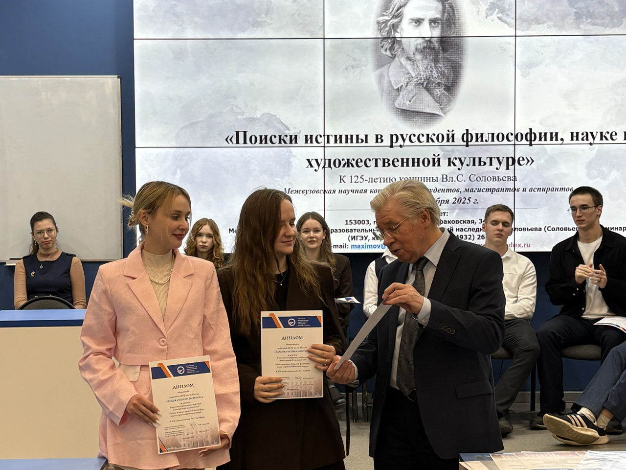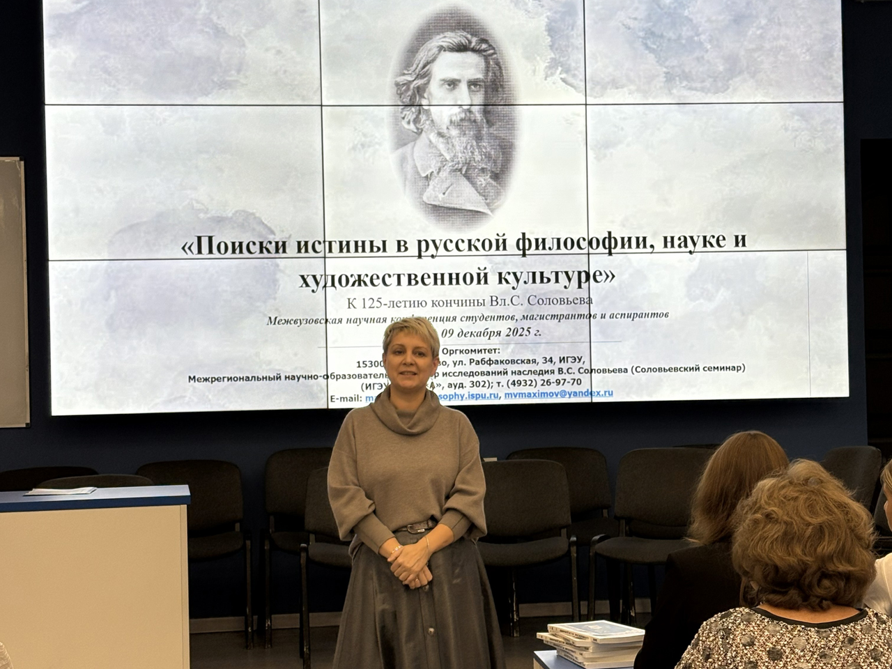 9 декабря 2025 года в ИГЭУ состоялась Межвузовская научная конференция студентов, магистрантов и аспирантов «Поиски истины в русской философии, науке и художественной культуре», посвященная 125 годовщине кончины великого русского философа Владимира Сергеевича Соловьева (1853–1900).