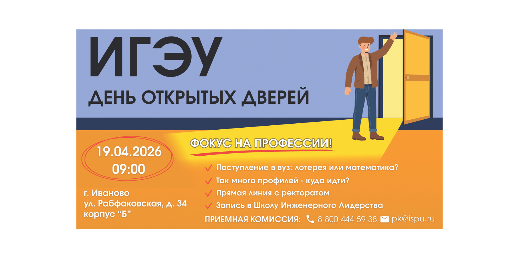 Уважаемые абитуриенты, уже в это воскресенье 19 апреля двери ИГЭУ открыты для всех желающих!