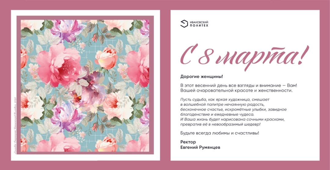 Дорогие женщины! От лица мужчин нашего вуза сердечно поздравляем вас с Международным женским днем 8 Марта!
